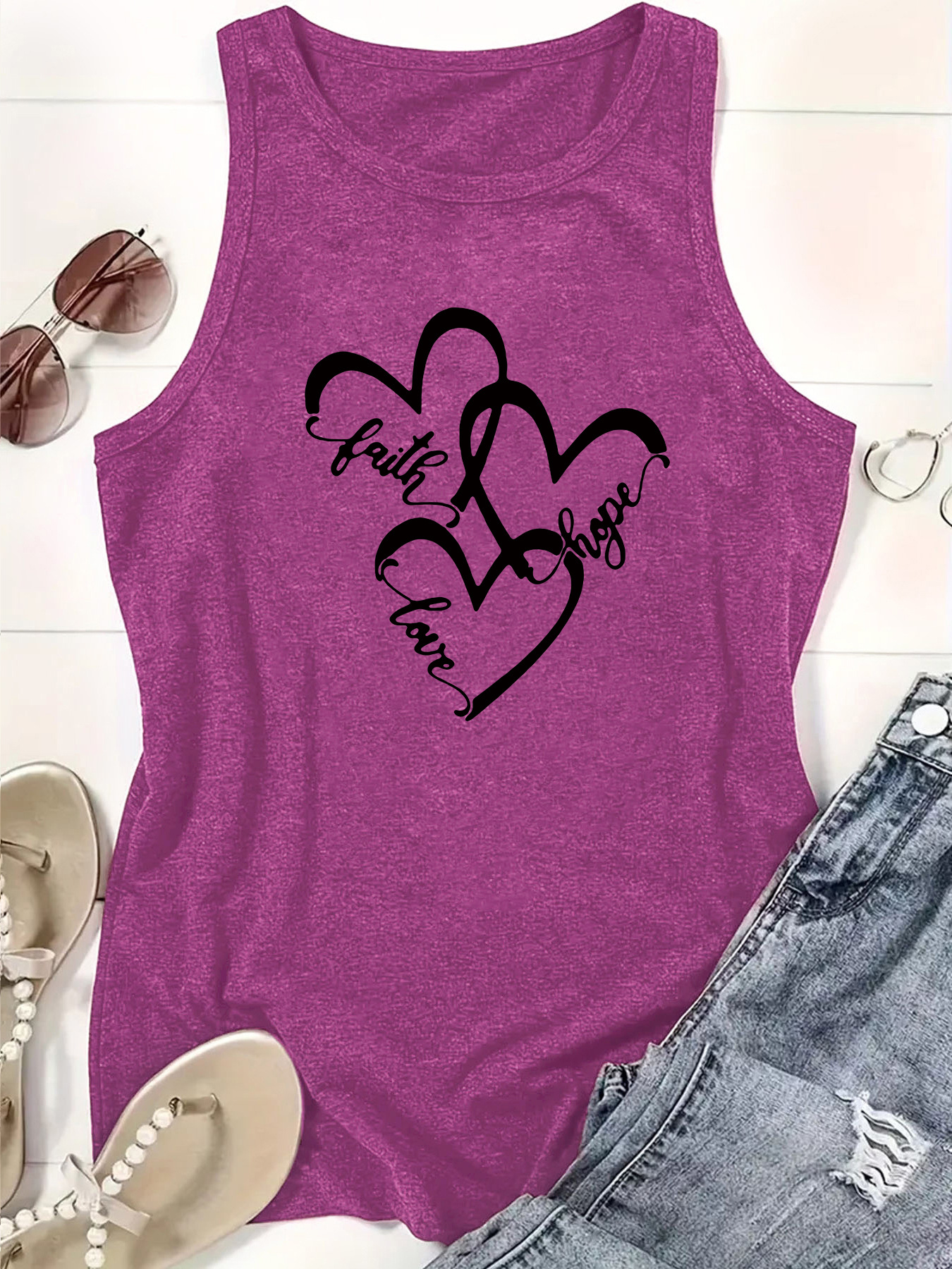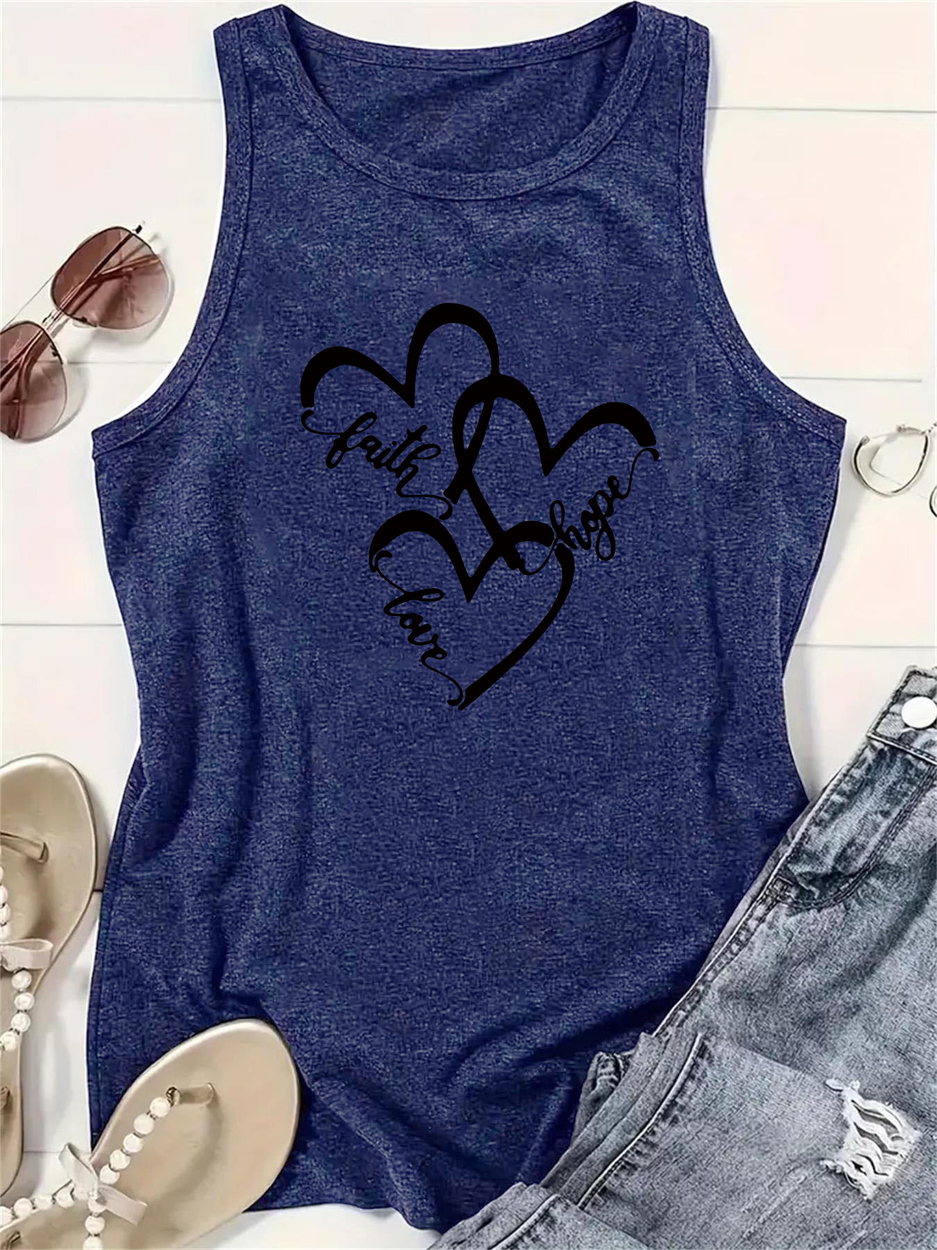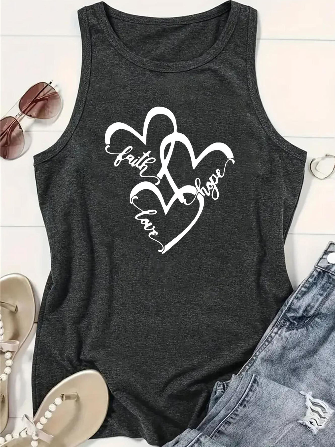 Faith Hope Love Heart Tank Top - Women's Casual Sleeveless Vest