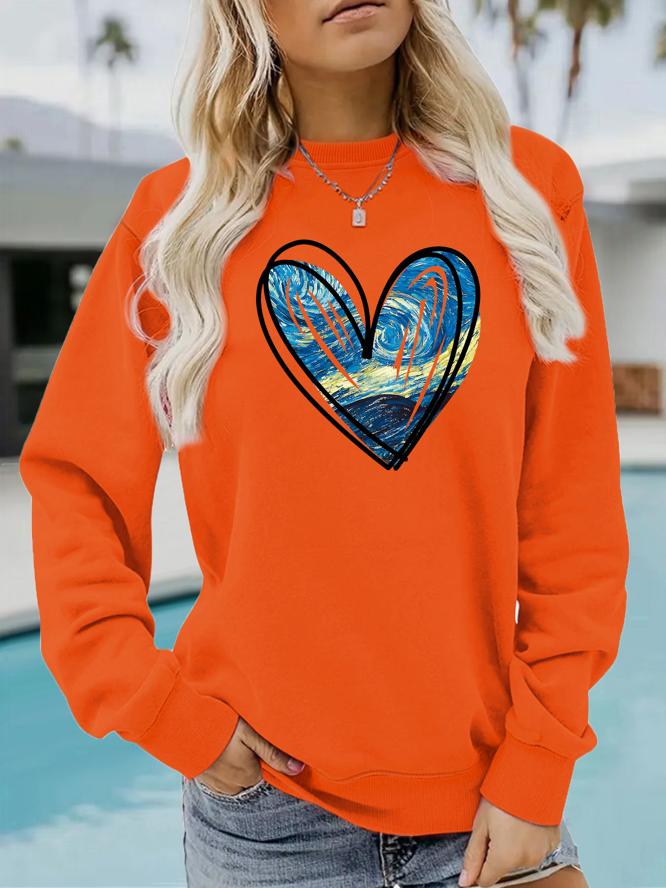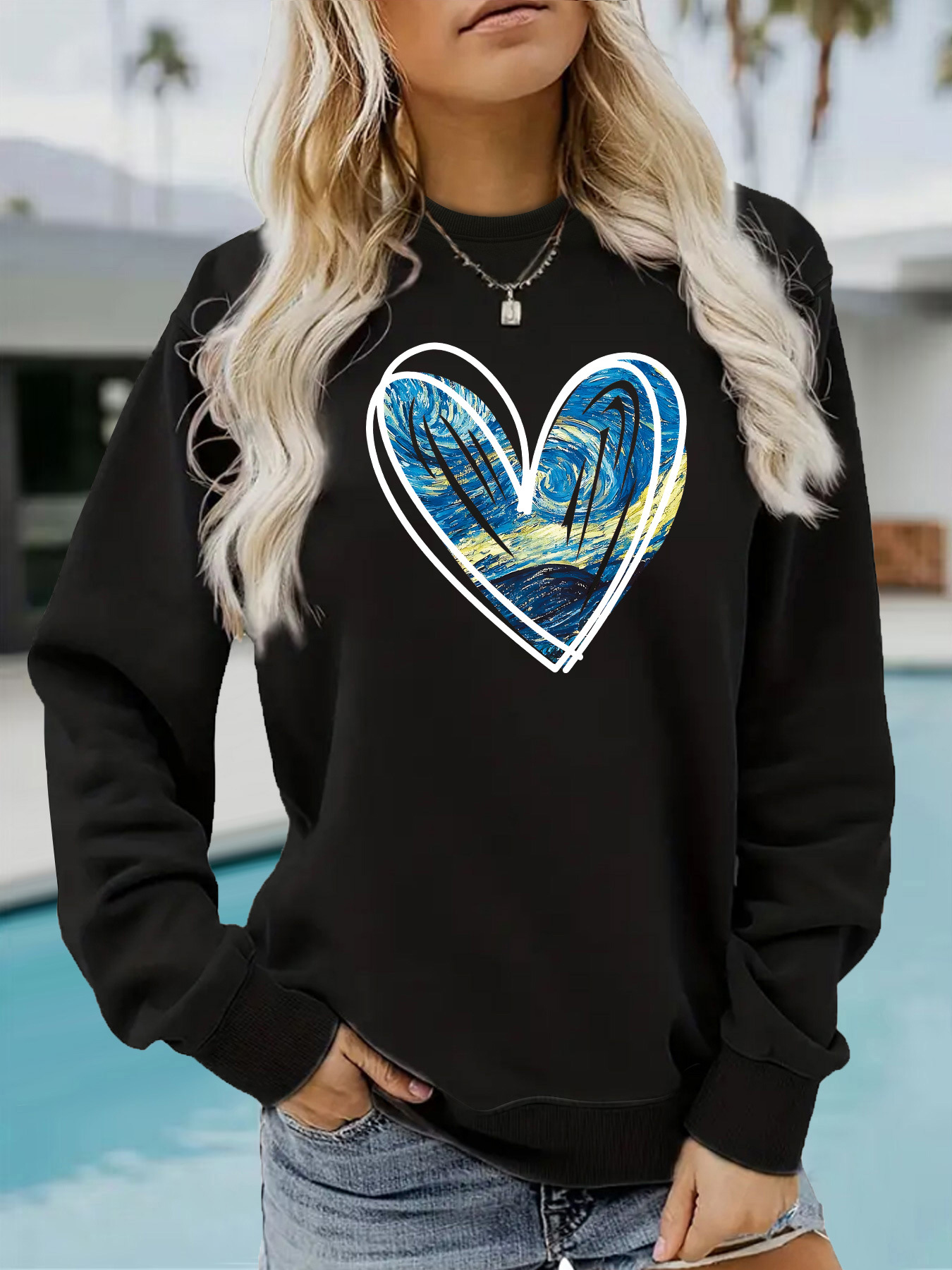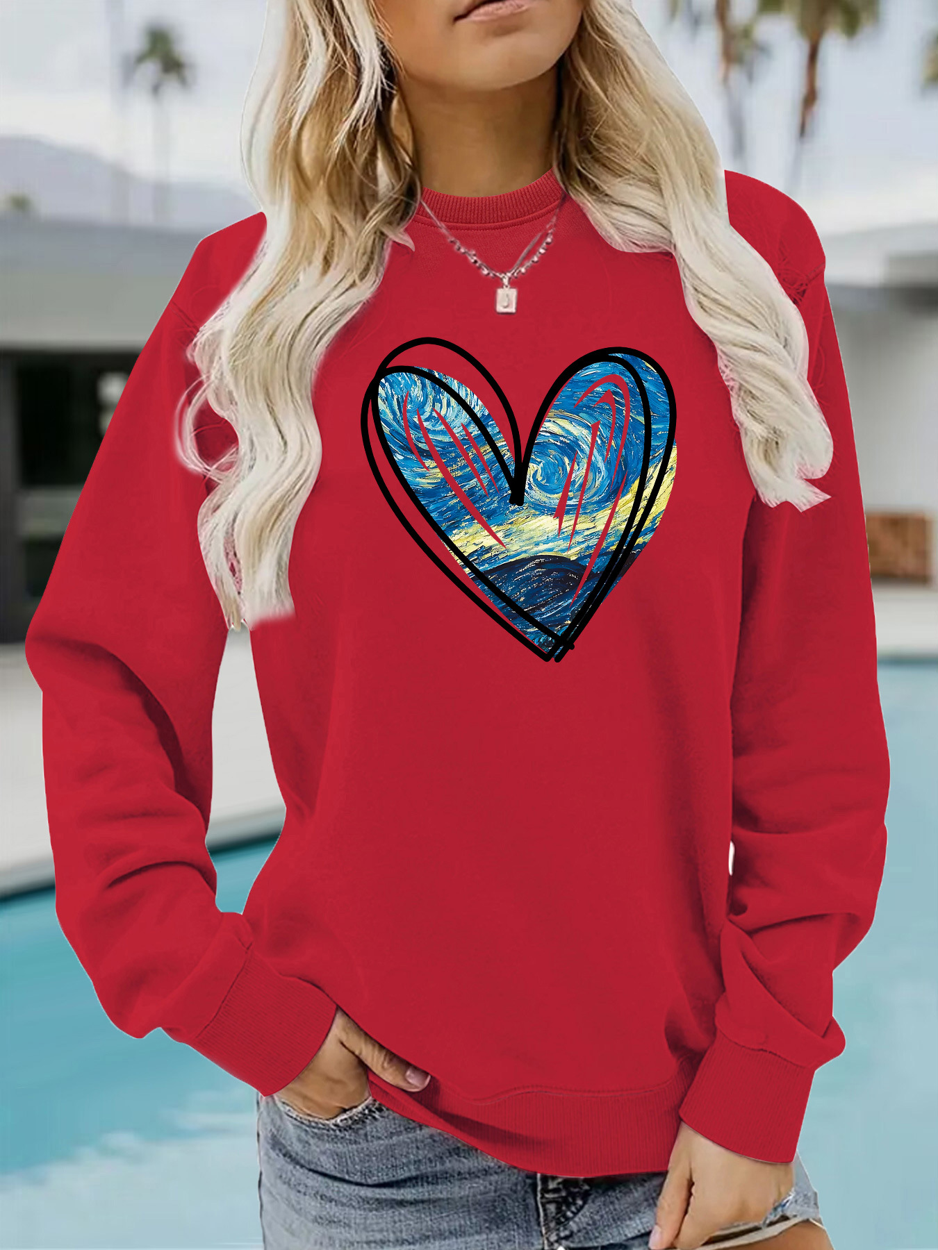 Heart Print Crewneck Sweatshirt - Abstract Graphic Pullover for Women